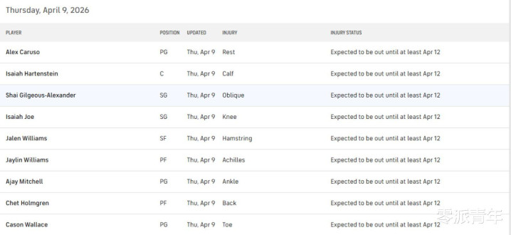 开云 雷霆队祭出“全员伤病”大招, 主力威望策略性全面轮休