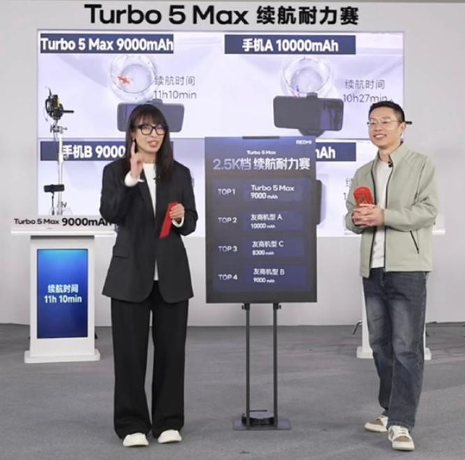 1月20日晚间,小米即将发布的Max新机:REDMI Turbo5 Max的续航实测直播结束了。这款手机的电池容量,和去年12月底发布的一加 Turbo 6系列相同,都是9000mAh。