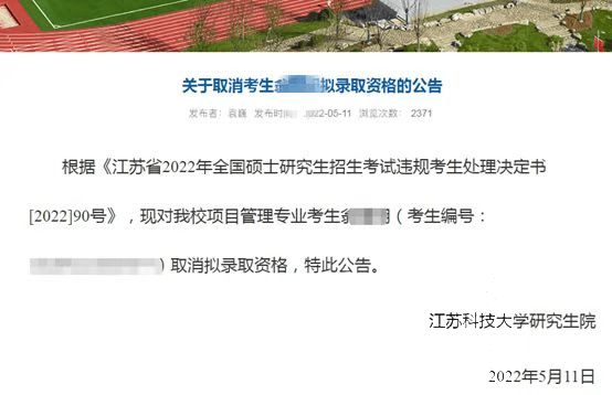 往年就出现过取消考生拟登科经历的事情,举例2022年考研江苏科技大学在5月中旬的时候发布了《江苏省2022年寰宇硕士议论生招生锻真金不怕火违规考生处理决定书》,取消了别称考生的议论生拟登科经历。