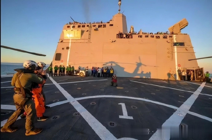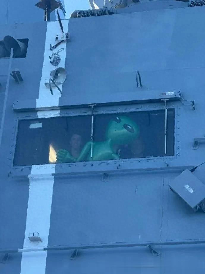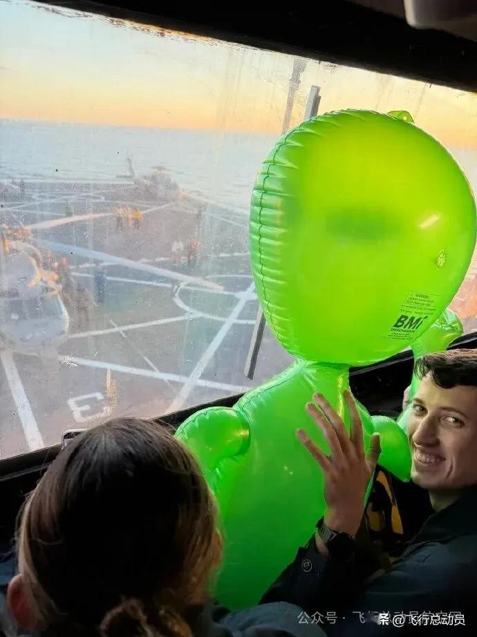 好意思国舟师两栖输送舰“约翰·P·默萨”号水兵带了一个充气外星东谈主向复返的宇航员暗示宽宥